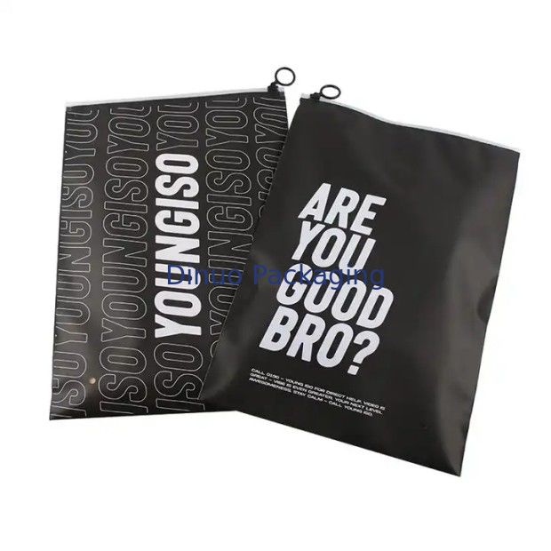 Logo imprimé sur mesure Vêtements sous-vêtements T-shirts Emballage CPE Noir plastique coulissante sac fermeture à glissière